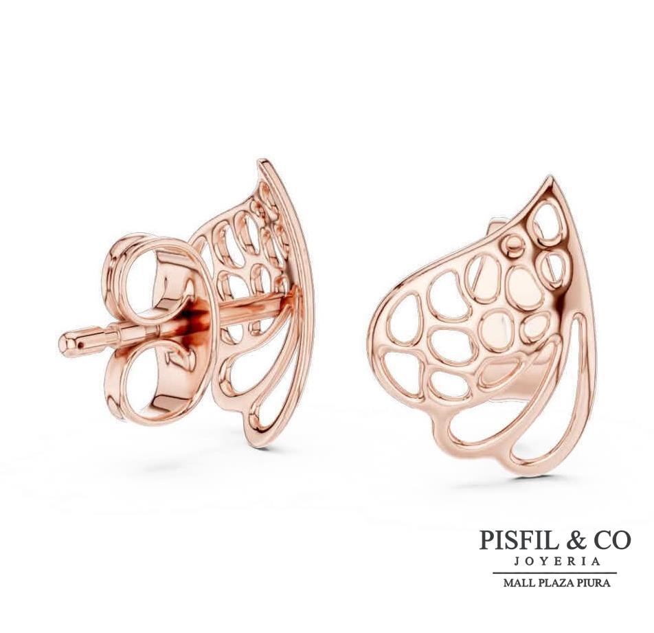 Aretes de Oro Rosa de 18 K con silueta de ala de mariposa