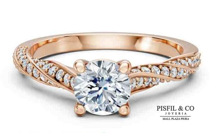 Diseño: Un aro de diseño torzal o entrelazado, el cristal swarovski central es abrazado por la curvatura del oro, la cual está engastada con cristales swarovski en pavé.