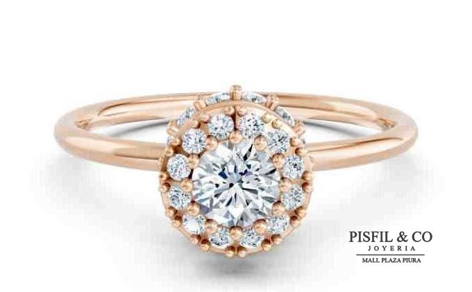 Diseño: Una pieza clásica de alta gala que destaca por un halo perfectamente simétrico. El diseño utiliza un engaste de micro-garras para sujetar los cristales swarovski del halo, creando una corona expansiva que maximiza el tamaño visual del cristal swarovski central sobre un aro liso de perfil redondeado.