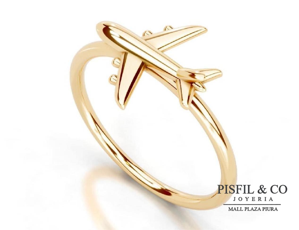Anillo de Oro Amarillo 18K que presenta la figura tridimensional de un avión comercial integrada al aro.