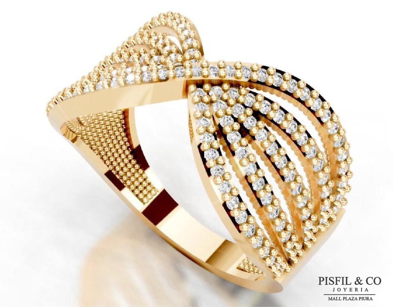 Anillo de Oro Amarillo 18K con diseño envolvente, compuesto por bandas envolventes con microcristales swarovski incrustados.
