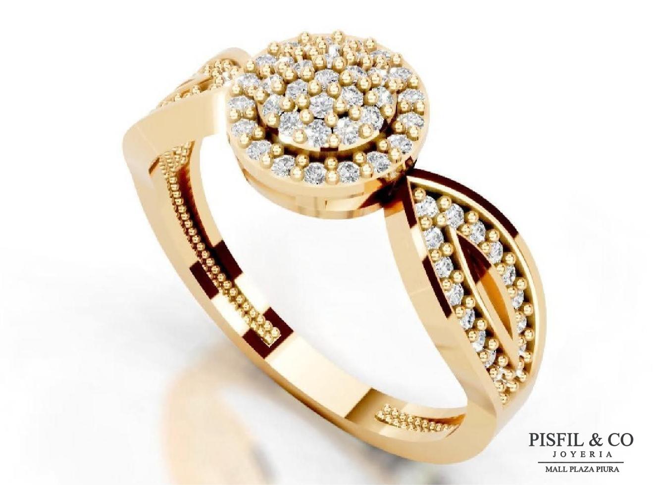 Diseño: Presenta un rosetón central elevado con engaste de racimo. El aro destaca por una apertura bifurcada de diseño orgánico, totalmente engastada con micro-pavé y detalles con cristales swarovski.