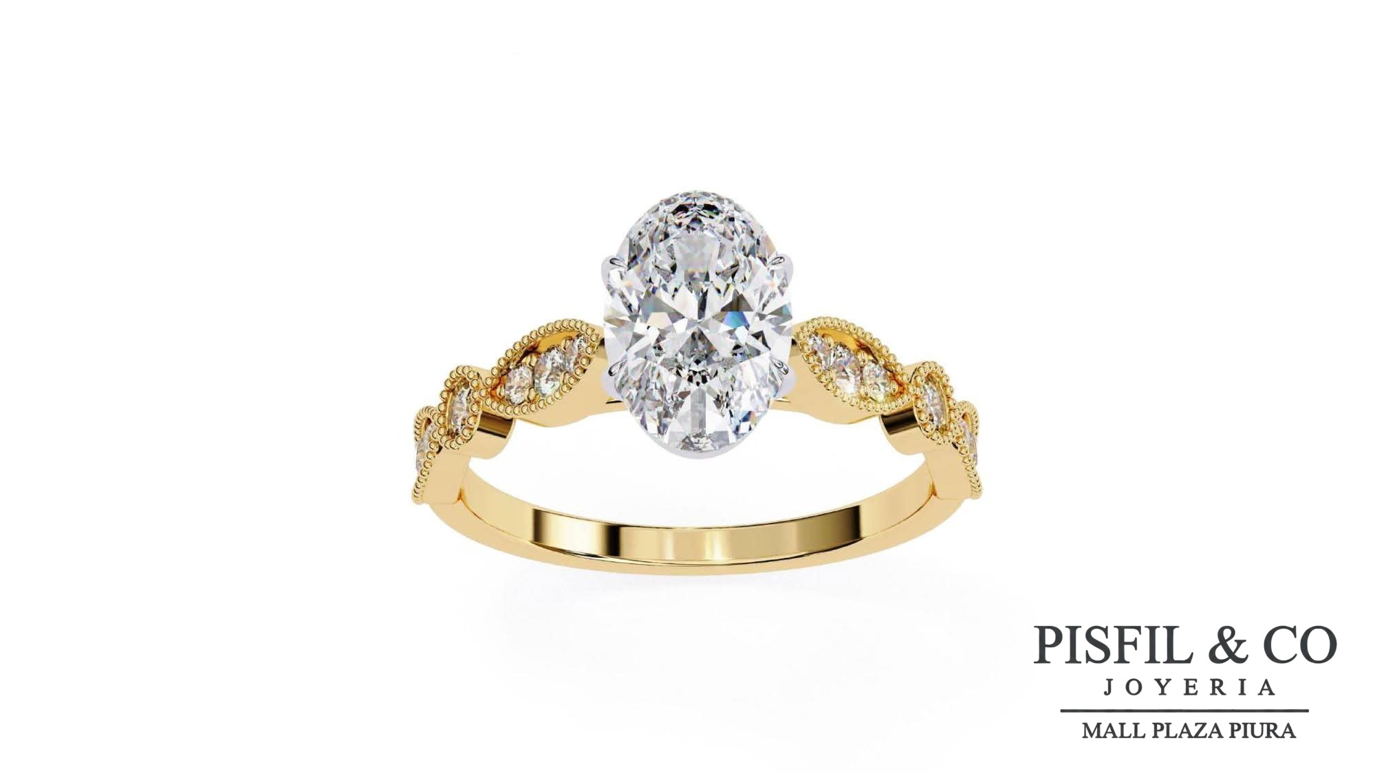 Diseño: Un cristal swarovski talla oval con el aro de oro amarillo engastado con microcristales swarovski.