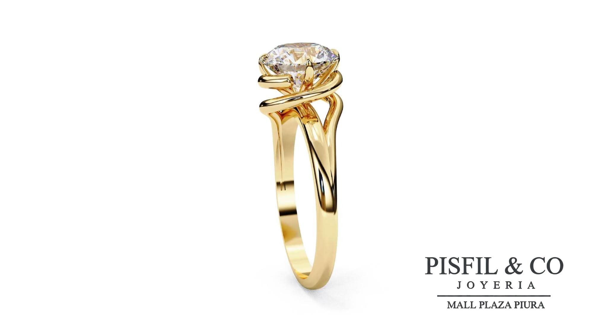 Diseño: Anillo solitario con un cristal swarovski redondo y un diseño de banda ondulada