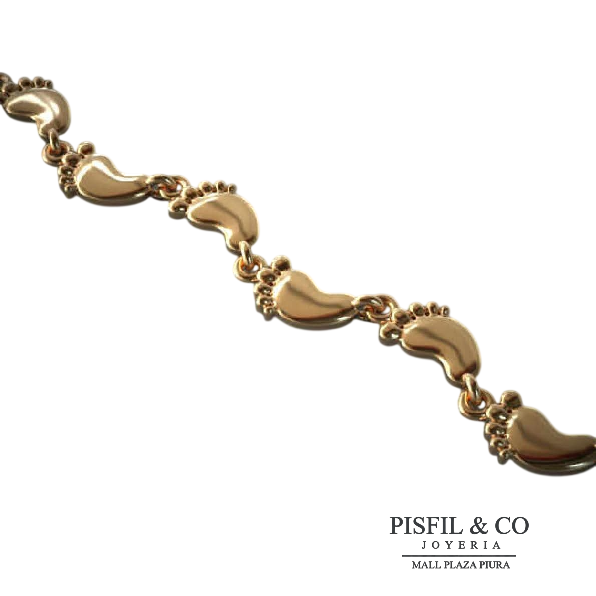 Diseño: Es un estilo tierno y lleno de significado que utiliza eslabones continuos en forma de pies de bebé. Cada «pieicito» es una placa sólida de oro con un acabado pulido de alto espejo, unidos entre sí por argollas circulares reforzadas que permiten