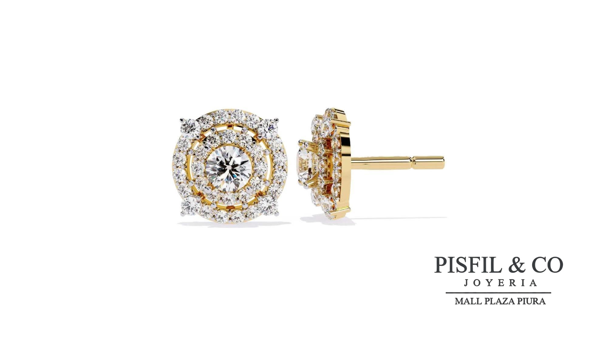 Diseño: Estilo sofisticado y maximalista. Se caracteriza por un cristal swarovski central de talla brillante (corte redondo) rodeado por dos círculos concéntricos (halos) de brillantes más pequeños engastados en pavé.