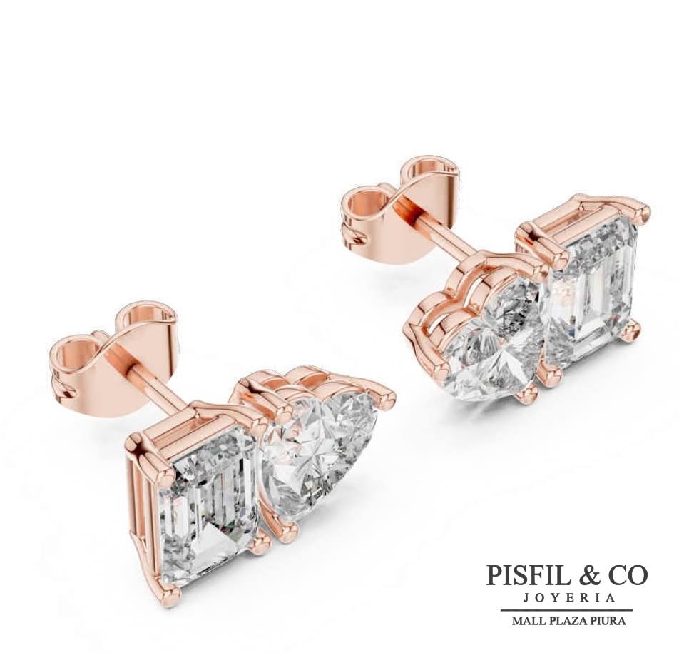 Diseño: Es un estilo moderno que destaca por la asimetría armónica de sus gemas. Cada arete presenta dos cristal swarovski principales unidos: uno de talla esmeralda (rectangular) y otro de talla pera (gota).