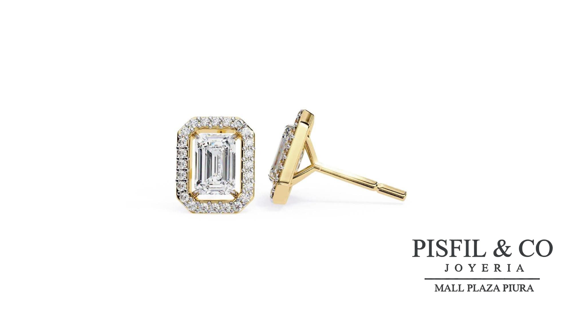 Diseño: Presenta un cristal swarovski de talla esmeralda (Emerald Cut). El solitario central está enmarcado por una orla o halo rectangular de microcristales swarovski redondos engastados en micro-pavé.