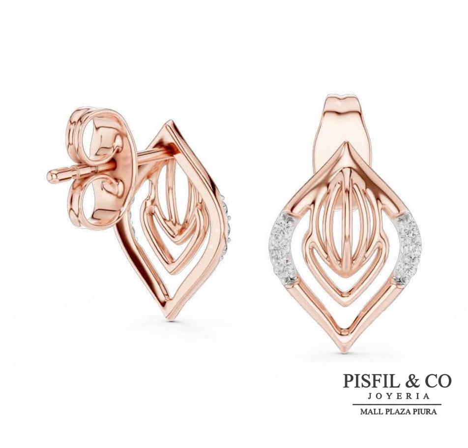 Aretes de Oro Rosa de 18 K con una silueta de rombo calada con múltiples marcos concéntricos de metal pulido.