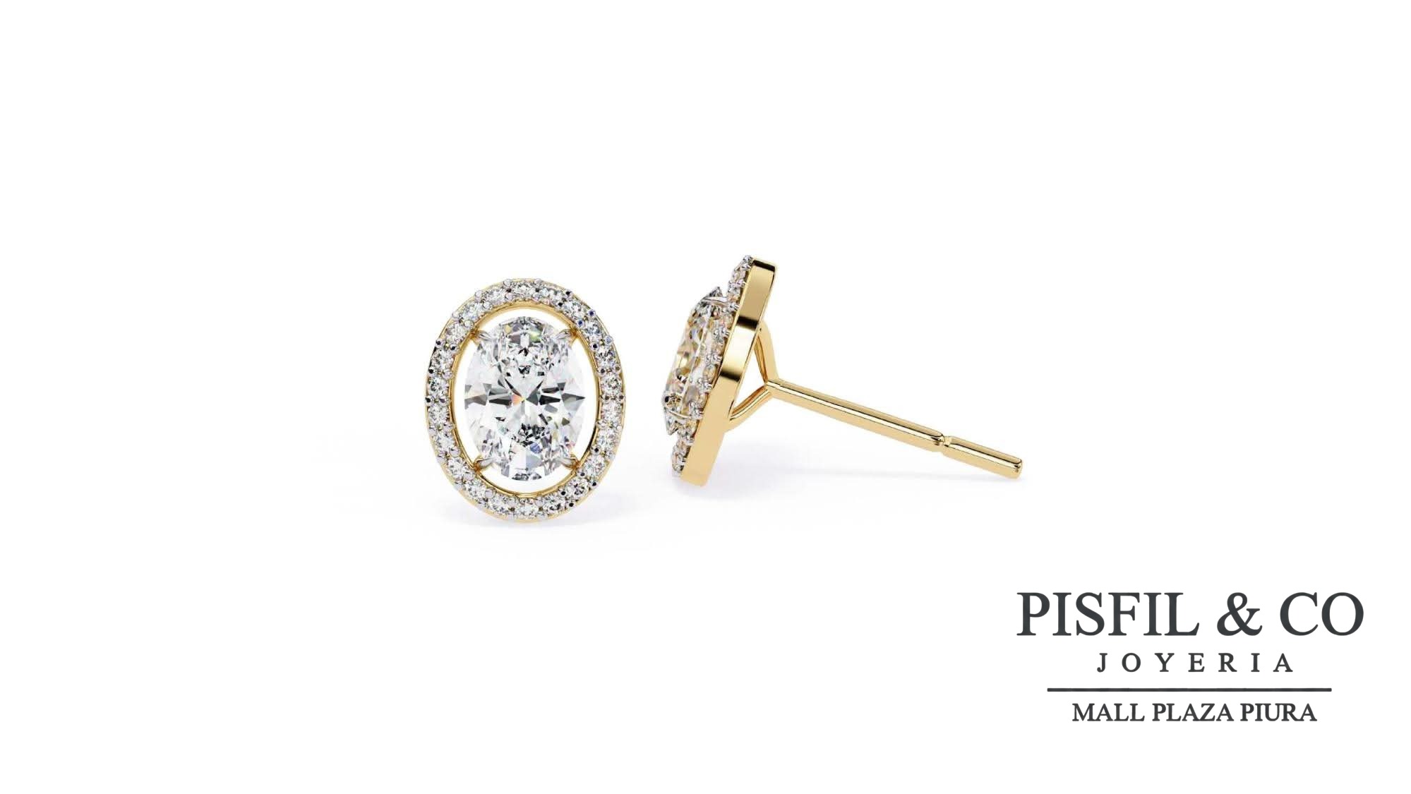 Diseño: La característica más distintiva es el espacio entre el cristal swarovski oval central y el marco exterior. El solitario oval parece «flotar» dentro de una orla de pequeños cristales swarovski redondos en micro-pavé.