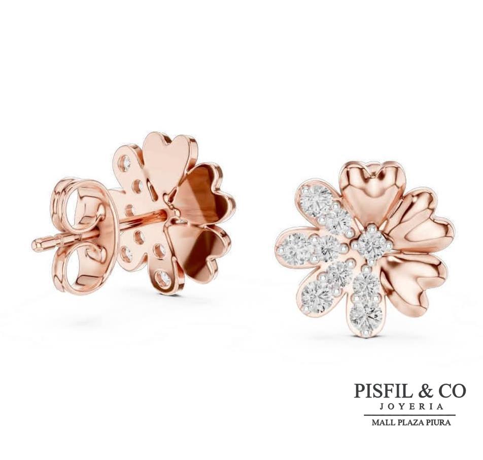 Aretes de Oro Rosa de 18 K en forma de flor de cinco pétalos.