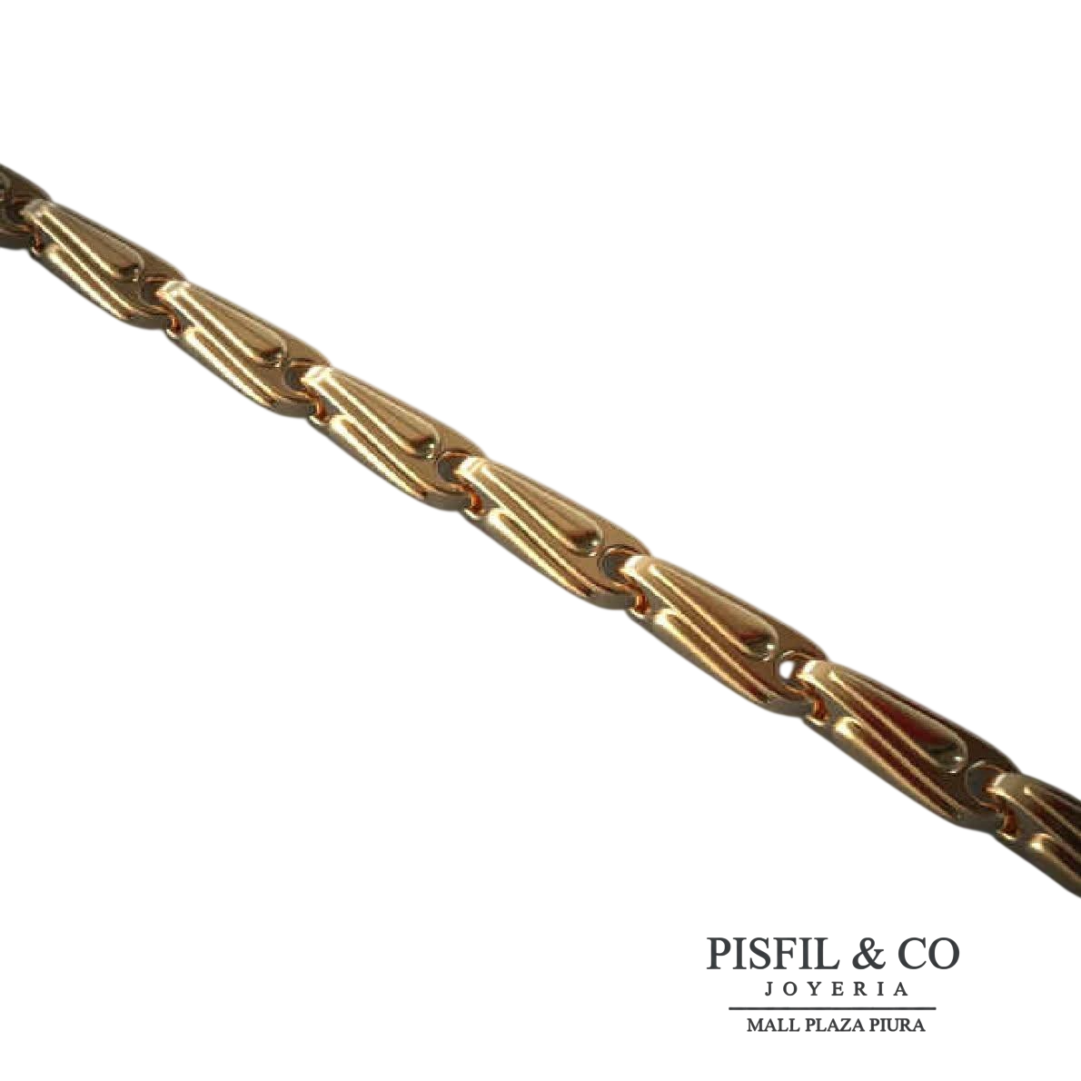 Pulsera de Oro18K, su eslabón tiene un canal central de bajo relieve que crea un juego de sombras y luces muy elegante