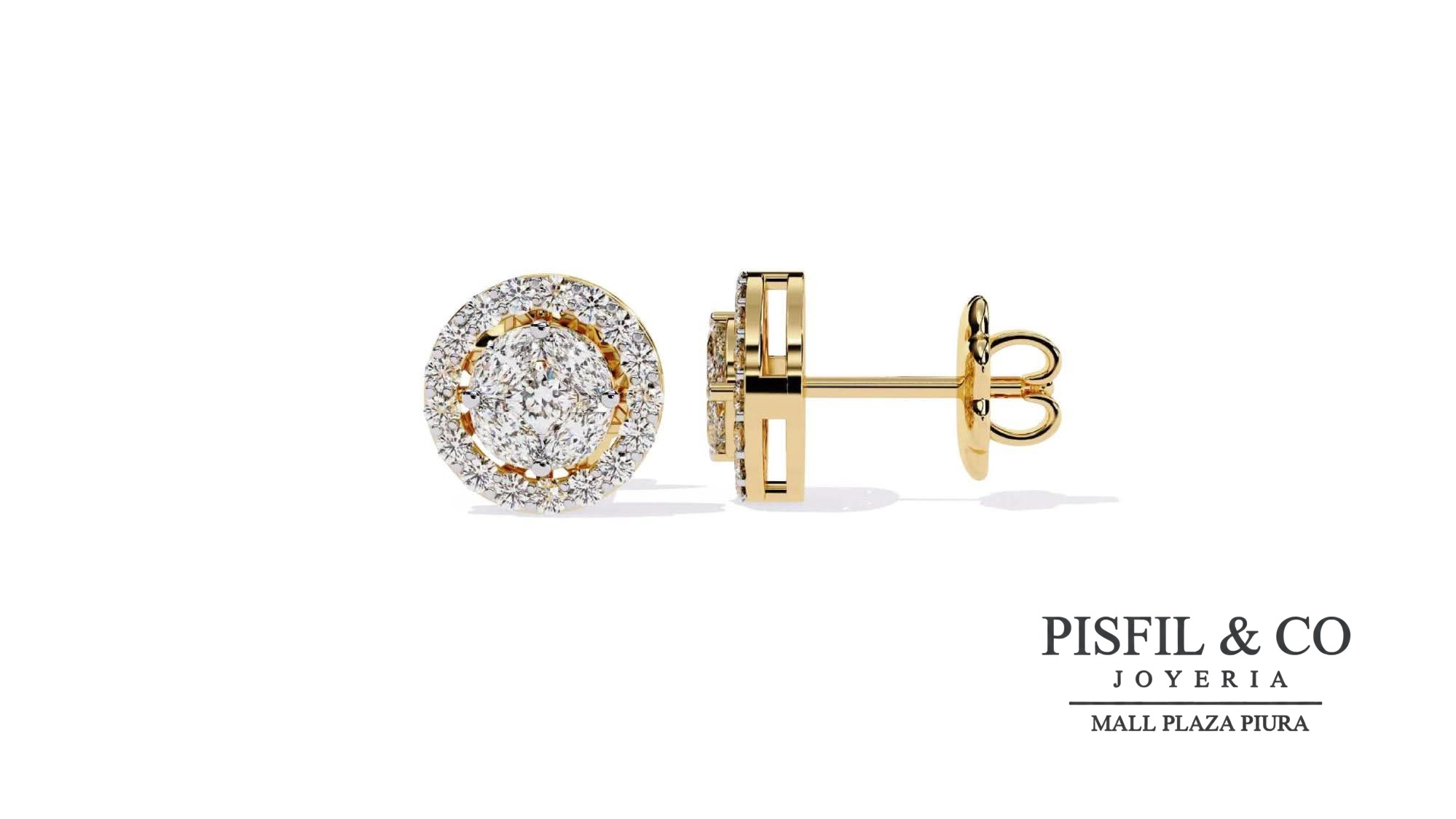 Aretes de oro amarillo 18k con un cluster central de cristal swarovski