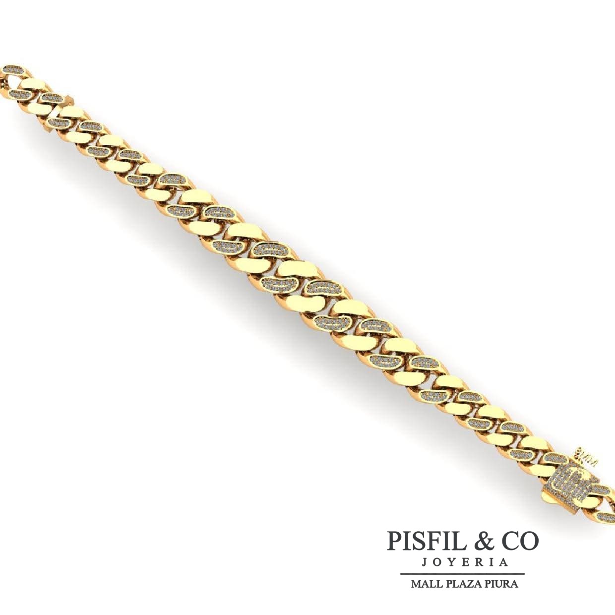Diseño: Este es el nombre más tradicional y reconocido para este diseño de eslabones gruesos y redondeados que se entrelazan de forma compacta. Se le llama «Imperial» debido al pavé de cristales swarovski que cubre la cara frontal de cada eslabón, elevando una pieza clásica a una joya de alta gama.