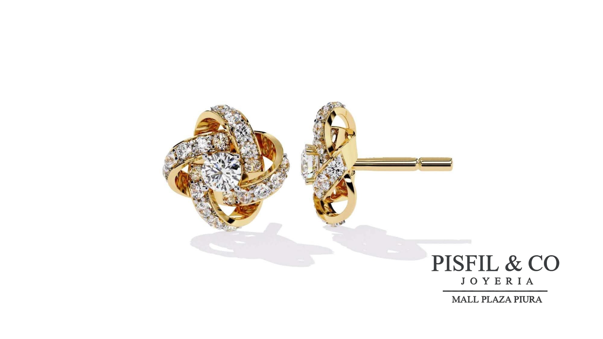 Aretes con un cristal swarovski central, rodeado por cuatro bandas entrelazadas de oro amarillo 18k.