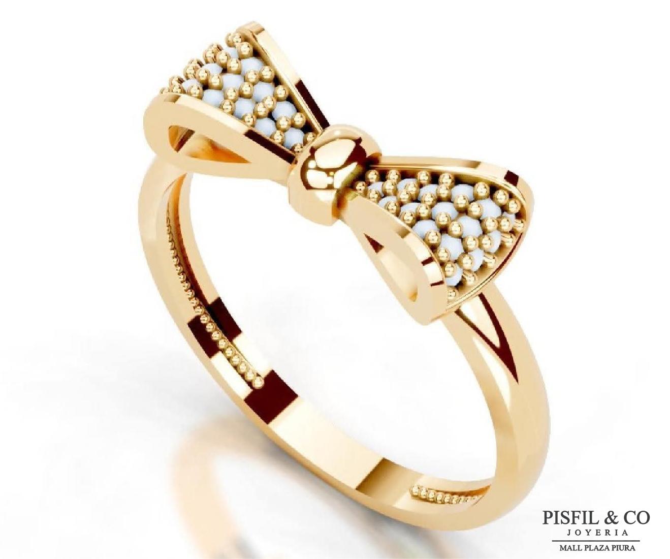 Material: Oro Amarillo 18K macizo. Diseño: Anillo con un detalle central modelo lazo acompañado de microcristales swarovski en patron pavé.