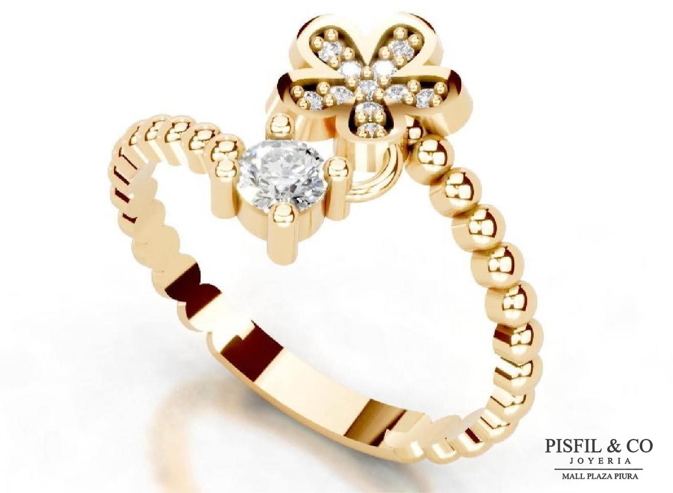 Diseño: La banda presenta un diseño híbrido: un brazo liso y pulido que transiciona hacia un acabado de «beaded shank» o cuentas esféricas, aportando una textura tridimensional única. Uno de los extremos culmina en una delicada flor de cinco pétalos. Esta figura está decorada con un engaste pavé de pequeños cristales swarovski.