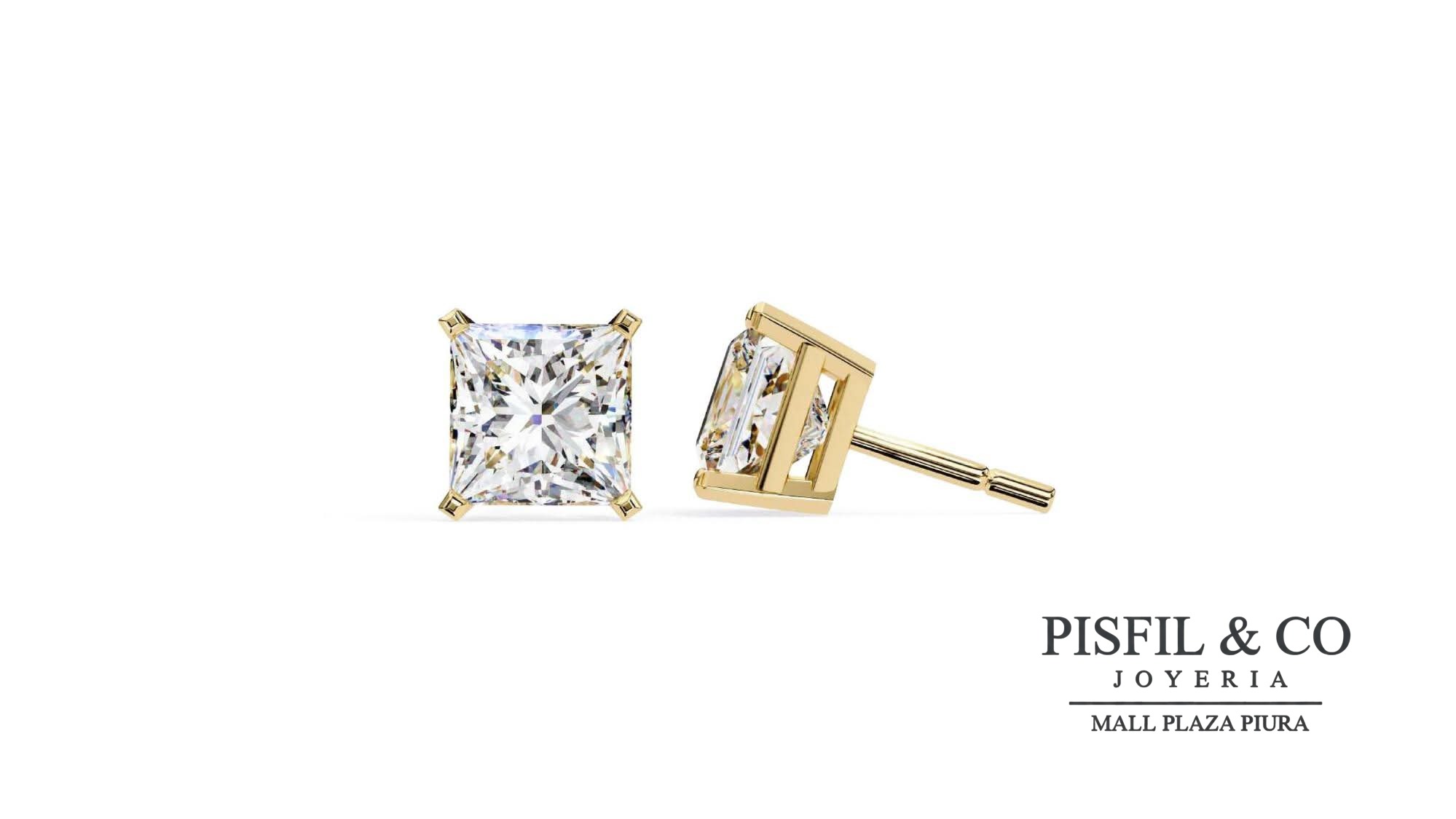 Arete de oro amarillo 18k en forma cuadrada